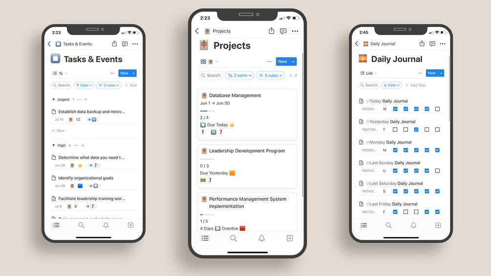 🚀 Daily Momentum is a Notion template optimized to manage your personal and business life using a series of connected databases. Use this template to track your daily habits along with a task/events/project management system. This template includes two dashboard page variations showing key information on one page. Projects can easily be managed using self-referential filters to display unique project information, such as which related tasks are complete and how many need to be completed. Each task is linked with statistics automatically so you get both project and big picture stats.